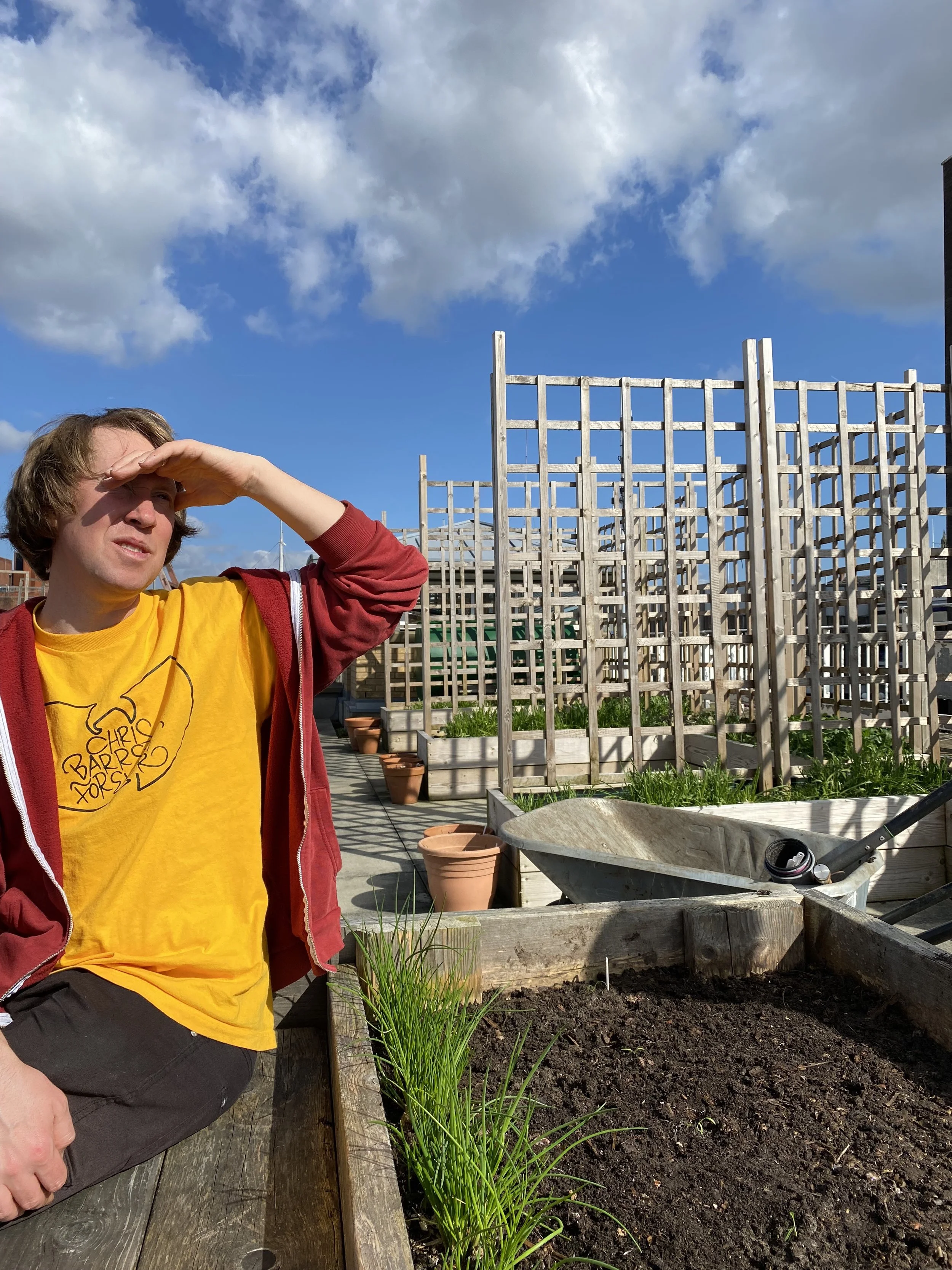 The greenhouse is nearly 30 degrees, which is surprisingly warm for this time of year, one of the main differences of growing on a rooftop! Because of this we’re experimenting with planting out the herbs earlier than usual.