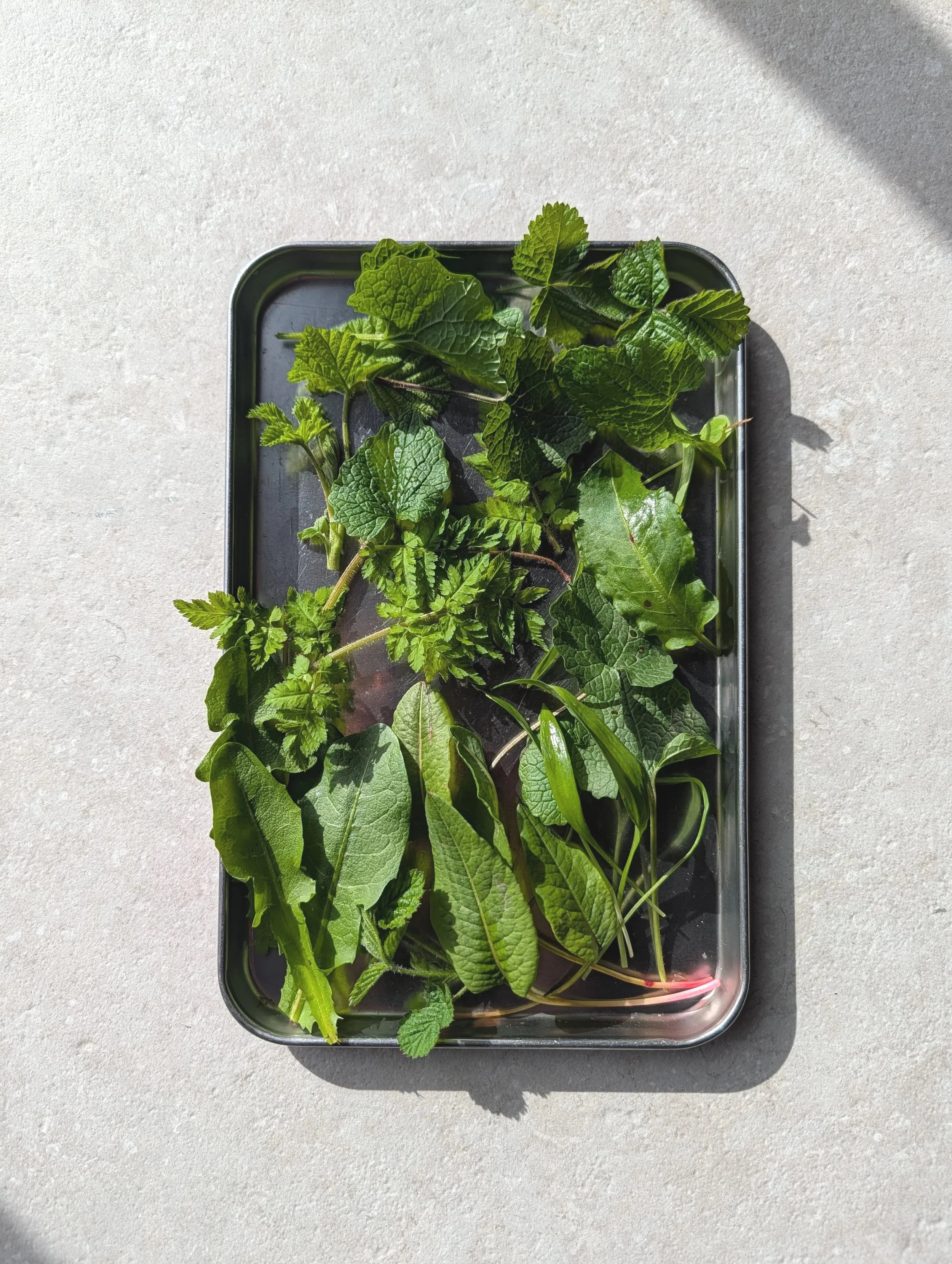 This simple green salad symbolises the coming of spring with a collection of tender young plants found on our first foraging trip of the year.